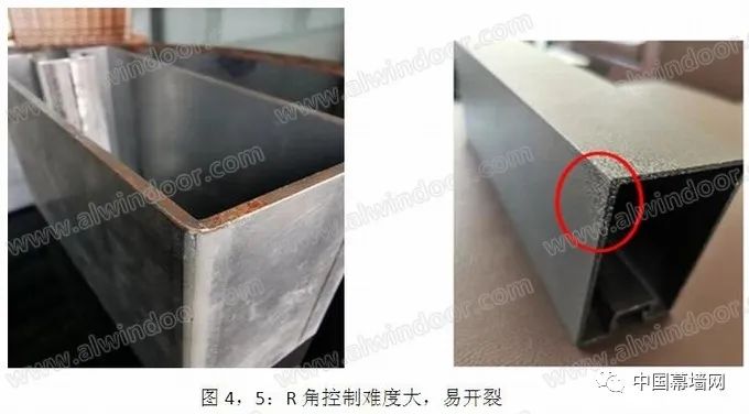 在成型过程中,主要控制两个关键点:一个是R角的控制,外露的构件一般要求外R角越小越好,但是实现小外R角难度极大,而且容易造成开裂,现在进口和国产精密钢型材的外R角一半控制在0.5-2mm之间。