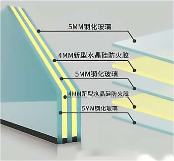 发生火灾时,受火面玻璃遇火后出现炸裂现象,水晶硅防火胶层迅速膨胀发泡,其膨胀发泡是原本胶层的