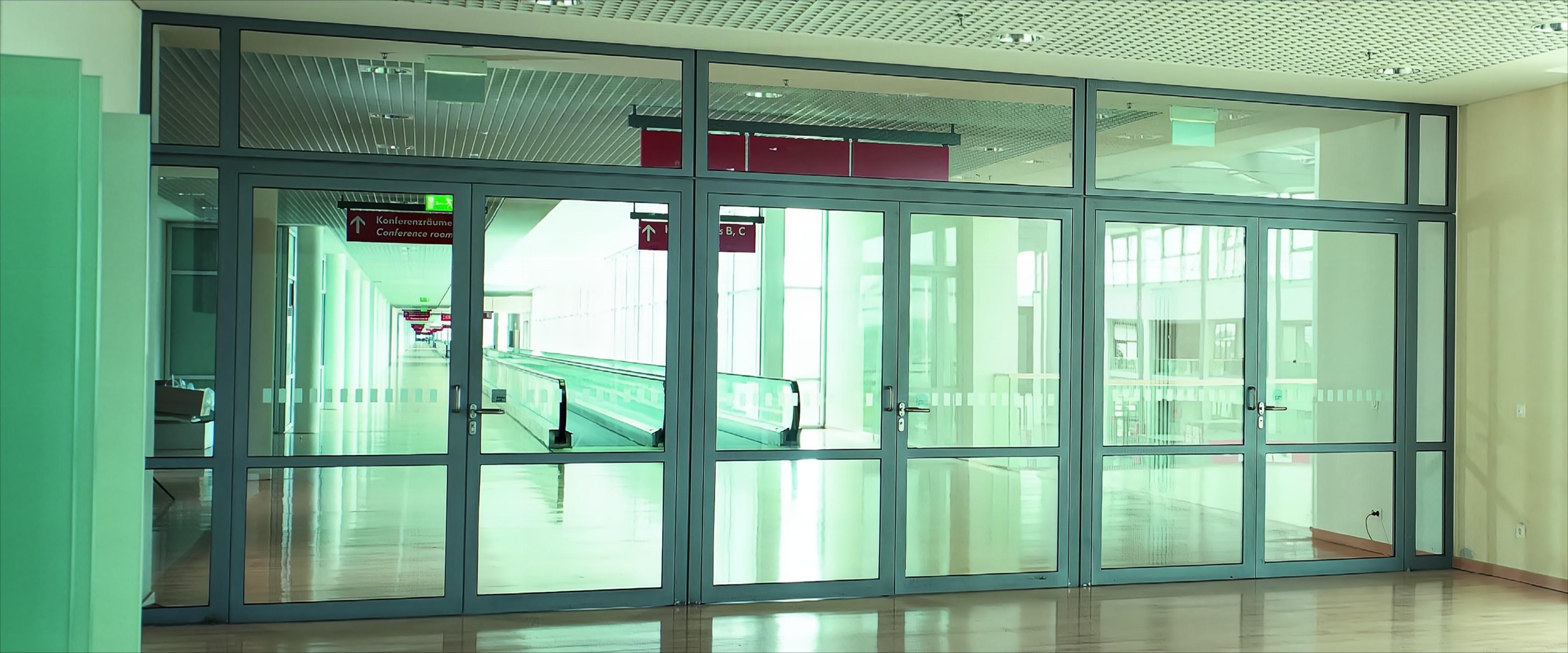 平开门设计简洁大方,框扇配有双道密封胶条,扇底可加装自动沉降式密封装置或密封胶条。 门体组角焊接,耐久性好,结构10年质保。 门扇底部可采用胶条或自动门底封等多种方式进行密封。